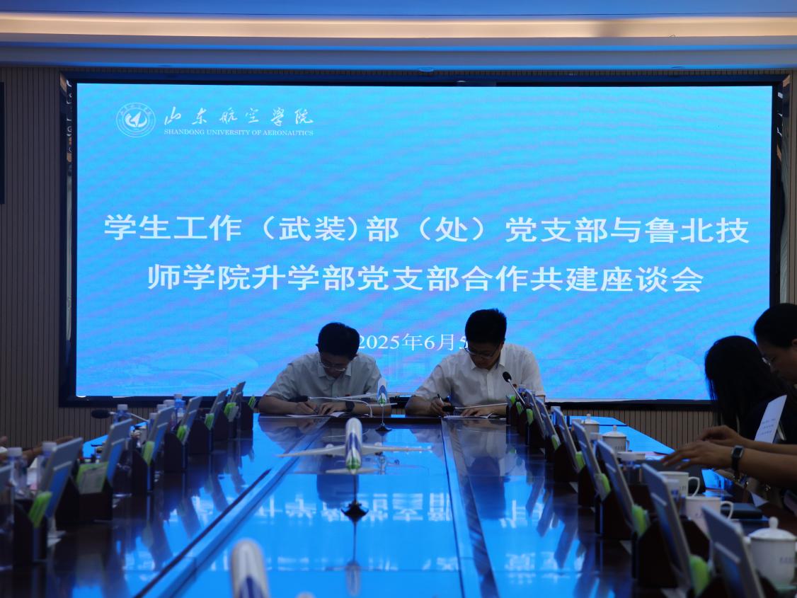 6月5日,山东航空学院学生工作(武装)部(处)党支部与鲁北技师学院升学部党支部在致远报告厅举行党建结对共建交流座谈会暨党建联盟引领发展协议签署仪式。双方党支部全体党员参加活动。